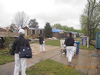 聖路易慈濟志工四月二十四日上午掃街結束後,五位志工一行於下午進行密蘇里州風災的勘災活動,並在下午分別前往聖路易被風災侵襲的柏克萊(Berkely) 、白爵頓(Bridgton) 和弗傑森(Ferguson)三個災區勘察。目前根據MOVOAD 的勘災報告,有百分之五十的房子已被評估,沒有人死亡,但房屋全毀的有29戶,重毀有118戶;而受損房屋中,一般輕毀的有230戶,輕損則有484戶。評估仍在進行中近日會完成勘災評估報告。
