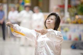 陳式太極劍也是趙女士的專長。這套劍法是在陳式太極拳的拳理基礎上,結合劍術的特點所發展出來的內家劍術。其劍法多樣,運劍時心息相依,以心運手,纏繞回旋,且連綿不絕。趙女士演練起來身劍合一,快慢相間,且相連不斷節節貫穿,讓人看了回味無窮。學員們在她悉心教導下,招式及劍法亦日漸純熟。