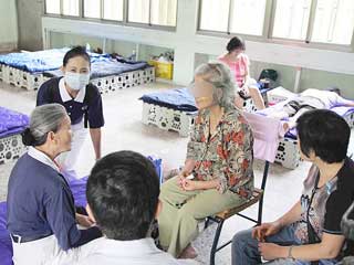 慈濟研發的「福慧床」派上用場,鄉親不必睡在收容中心的地板上。(攝影/高雄真善美唐江湖)