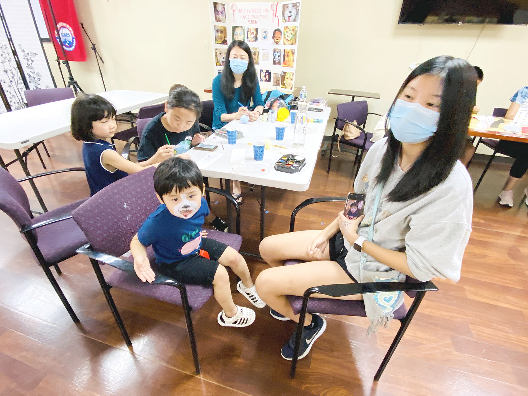 學校還安排了學生志願者帶領客人們參觀了學校的校園環境,並開展了一系列課程註冊諮詢、註冊繳費服務、中文分班測試等服務。大廳裡充滿書香味和趣味性的各個展臺展示了一些主要特色課程以及校園文化中的系列活動介紹;課程的特色主題設計、齊全的設施們等讓家長們連連稱讚。高中生志願者在開放日設置了兒童活動角,帶領小朋友們玩折紙,畫花臉,讓家長們能夠安心瞭解學校的課程。