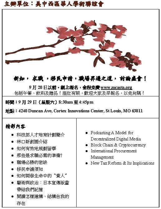 聯繫電話:636-590-6998(聖路易斯中華文化中心)