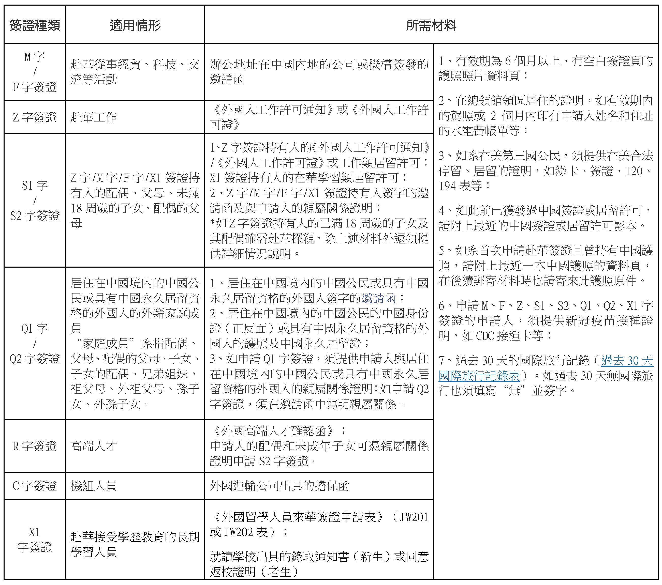 關於當前赴華簽證可受理範圍和受理程式的通知
