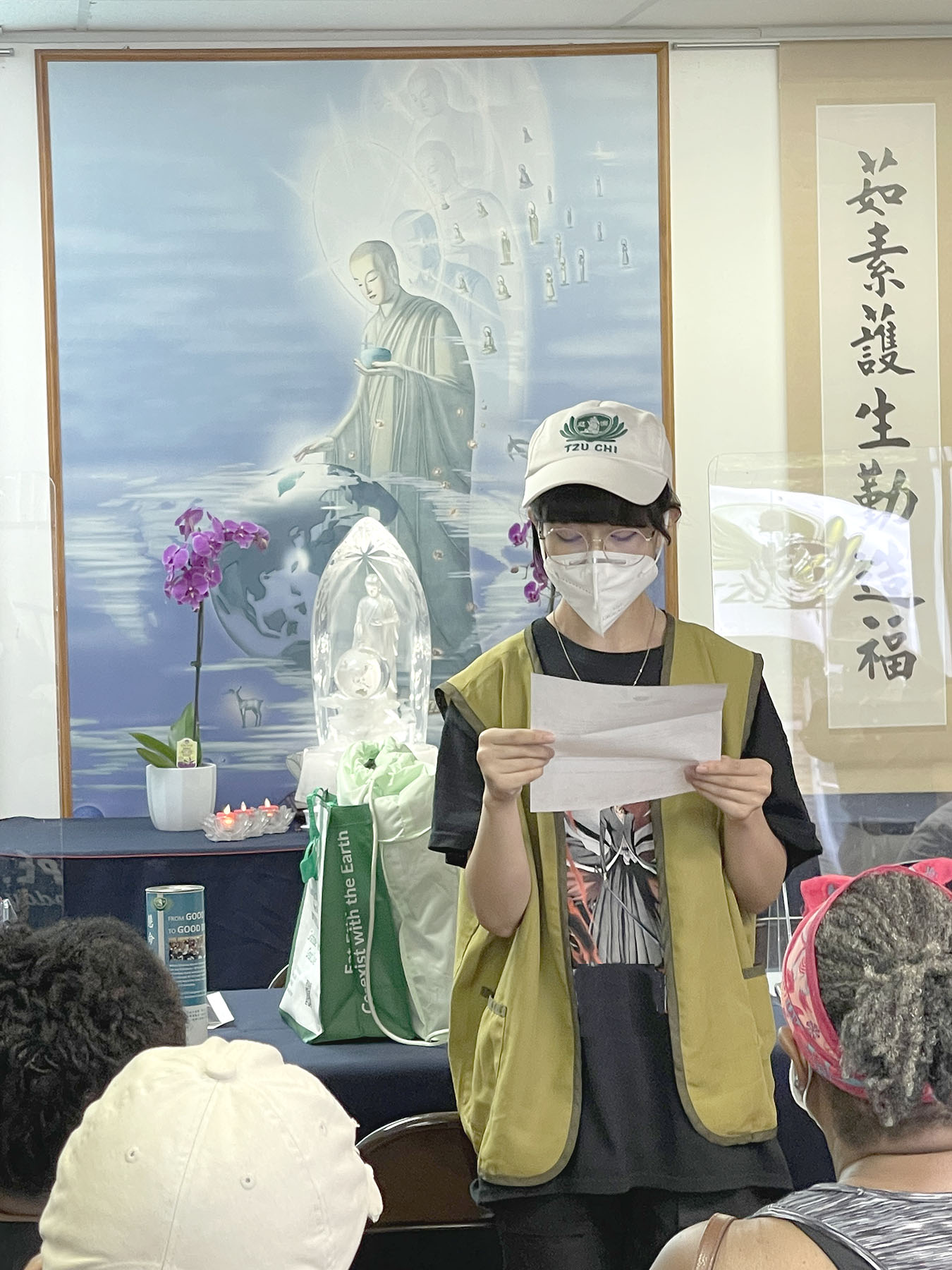自阿富汗移民至聖路易的Sahar Hussaini 亦參加了發放活動,並為大家恭讀了證嚴上人給災民的信,信中表達了關懷與不捨,證嚴上人希望能以地球人共有的大愛讓大家得到安慰和鼓勵,並相互給予勇氣和力量,大家團結共度難關,和平安全的生活,並能將這份愛傳遞給其他人。Sahar 是慈濟助學獎學金的受獎人,目前就讀於聖路易大學,他也分享了他自身的經驗,在他與家人初來美國之際接受了許多不同組織、單位和學校的協助,在他們最需要幫助的時候得到這些幫助,他都銘記在心,更希望以後也有能力可以回饋社會為需要幫助的人付出。
