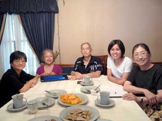 勤勞的杜穎秋,何燕紅,孫莉早早的就來到了學校準備起了美食的重頭戲:包餃子。餃子多的來不及煮了,一旁幫忙的黃玉玲也拿出了絕活:鍋貼,結果大受歡迎。陸續地大傢伙都來了,帶來了各自的拿手好菜:黃建偉的可樂雞翅,王吉俊家的油條,晚秋的油燜蝦,汪向寧的炒臘腸,田楠的鹽焗雞,廖立芬的酒釀元宵等等,好菜多的都來不及一一細嘗。雖然俱樂部也準備了月餅、水果、點心,但是最受歡迎的還是大夥的南北美食。