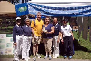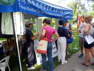 慈濟聖路易聯絡處也在此菩薩大招生,盼能廣招天下善士一起淨化人心,愛護地球。師兄姊們在攤位上不僅將慈濟人的足跡展示給來參觀的民眾並推動素食;展示品含蓋有援助災難的香積飯,環保酵素樣品,環保?收保特瓶製成的毛毯、衣物等產品,並以靜思語和參觀者結緣。