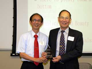 國科會前副主委牟中原教授(左)接受大會獎牌