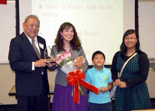 學聯會會長侯光中博士頒贈社區服務獎給聖路易中文學校校長程寶珠女士