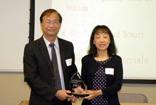 駐休士頓台北經文處科技組張揚展組長頒發張恩慈教授傑出學人獎,由張教授學生許美智女士代領。