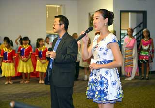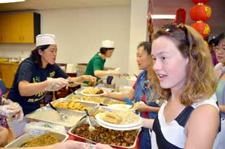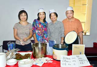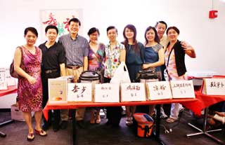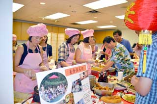 卡拉OK俱樂部聚集了一批美食行家,他們提供了美味春捲、風味豆花、酒釀園子、可樂雞腿、地鮮涼拌、珍珠奶茶等等眾多食品。每樣食品都具特色,別有風味。他們熱情的服務,讓人們感到自己仿佛回到了上海、回到了北京、回到了四川;仿佛自己就站在南京的、西安的或臺北的美食街上,令人親切,令人安逸。聖路易最近成立的美食俱樂部,今次以統一的粉紅色專業餐飲服裝亮相,驚豔奪目。他們做起飲食既專業又敬業,令人佩服。在她們的攤位前,長長的買飯隊伍從活動開始一直持續到晚會結束。藍草莓點心坊的每次閃亮登場都不負眾望。她們的中秋月餅、金色蛋撻、綠色層糕等等,樣樣都非常專業、驚豔。聖路易舞社,一個活躍于聖路易的交誼舞團體。他們的美食也像他們的舞姿那樣多姿多彩,令人目不暇接,是一個在美食方面特別有創意的攤位。春之韻俱樂部的雞絲冷面去年就已經贏得了大家的青睞。她們做川菜富有辣妹子的風情;她們做江南小菜,充滿著小家碧玉的柔美。其他社團的美食也各有千秋、各有特色,譬如乒乓球俱樂部的美食攤位也一直人山人海;朱明輝太極拳俱樂部的鍋貼和新鮮蔬菜吸引著人來人往;劉雙秋的美食名楊四方。現代中文學校的PTO這次又是打頭陣。他們的攤位,美食和飲料種類最多、量最大。這是一攤最偏向于美國化的中國食品。這種美食大量地吸引了外國友人和孩子們。這些社團和個人,為這次《品美食‧慶中秋》晚會做出了不可磨滅的貢獻。