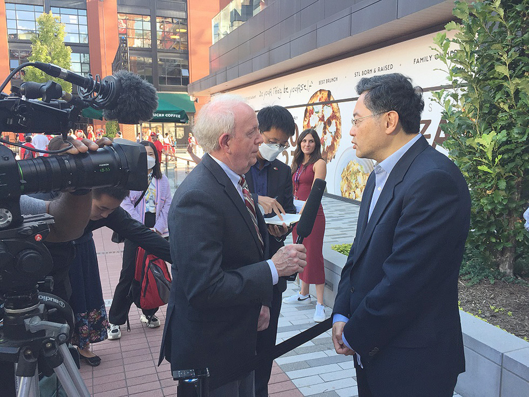 當日,秦大使還接受了聖路易斯媒體現場採訪。大使表示,過去幾十年來中美姐妹友城關係將兩國人民更緊密地聯繫在一起,通過密切交往加深了彼此瞭解和友誼,聖路易斯-南京姐妹城在這方面樹立了典範。希望特別是讓兩國留學生等年輕人更多交往,讓中美民間友好煥發新的活力。