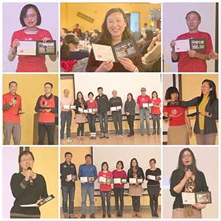這是勝跑群第四次舉行年度頒獎大會,參加的人數一年比一年多。今年的晚會更是不同尋常,晚會原本定在1/12日晚,不過老天在11–12日晚下了12寸雪,好事多磨,晚會不得不推後一天到13日,但壞天氣沒有阻止跑友們歡聚一堂的熱情和步伐。