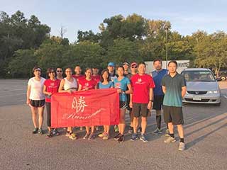 "勝"跑群的初創只是幾個愛好跑步的老友,一起跑步聊天的地方,大家瀟灑而隨意。但是隨著人數的擴增,需要投入大量的精力去維護,去協調,去組織群活動。群友的初始加入除了好奇與新鮮還有一份託付與信任。為了眾多的期待,隊長林農及夫人陳靜玲,默默的付出,這種付出像大樹的根,少有機會得到陽光的矚目,但卻是整個群體最有力的保證。