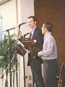 一個美國Buffin一家八口從肯塔基帶來美好的音樂敬拜。Brandon弟兄利用自己彈吉他的恩賜教導自己兒女們用樂器贊美神。這個家庭樂隊帶領我們唱了多首大家熟悉的中英文經典贊美詩歌。此外,他們給我們帶來神的話語耶利米哀歌3:21-26,“我想起這事,心裏就有指望。我們不至消滅,是出於耶和華諸般的慈愛;是因他的憐憫不至斷絕。每早晨,這都是新的;你的誠實極其廣大!我心裏說:耶和華是我的份,因此,我要仰望他。凡等候耶和華,心裏尋求他的,耶和華必施恩給他。人仰望耶和華,靜默等候他的救恩,這原是好的。” 神的憐憫沒有斷絕,所以神是信實的。正因為神的信實可靠,我們才能有希望。我們每一天早上起床時都應當記著神的憐憫是新的。在當時舊約時代,作者的處境非常糟糕。國破家亡親人離散,耶利米雖然很傷心痛苦,但是他想起神的憐憫和信實,他的心中充滿了盼望。在這到來的2019年,不論發生好的事情還是壞的事情,我們都應當記著我們仍有盼望。因為神已經向我們顯明他施恩的證據。他不以我們的過犯對待我們,反而差派他的獨生子耶穌基督為了我們的罪被釘死。耶穌基督第三天從死裏復活,作為我們盼望的證據。正如詩歌唱到,“神差愛子,他名叫耶穌,他賜下愛, 醫治寬恕, 死裏復活, 使我得自由, 那空墳墓, 就是我得救的記號, 因他活著 我能面對明天,因他活著, 不再懼怕, 我深知道, 他掌管明天, 生命充滿了希望, 只因他活著。”