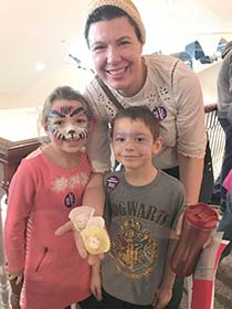 攤位前人山人海,孩子們,家長們排著長隊迫切要體驗這些優美的中華文化。志願者學生們從上午一直忙到下午,連吃飯的空隙也不停下來,就想多為孩子們畫一個臉,教他們做一個小面動物,剪一個小豬剪紙。到結束時仍然有不少孩子沒輪上,帶著一臉的期待而不舍離去。對我們的志願者,這是一個多麼充實而有意義的一天!今年是我們中文學校繼2015年來連續四年到聖路易兒童博物館慶祝中國年,為小朋友們體驗中華文化服務。來訪的兒童小觀眾一年比一年多。