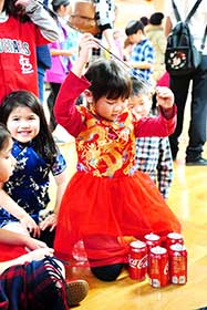 精彩的晚會讓時間飛逝,一個半小時一眨眼就過去了,而晚會之後的家庭遊園會讓歡樂的節日氣氛在中文學校繼續。精心準備的12項遊戲組織得井井有條,每個遊戲攤位前都排起了長隊:有動感十足的跳繩,呼啦圈,高爾夫球,拍乒乓球;也有需要耐心和細心的搭積木,筷子夾球,釣魚;還有需要點兒小技巧的鑽杆,套圈,投擲乒乓球,頭頂氣球;而需要動腦筋的猜謎語遊戲自然也是必不可少。最高興地莫不過是小朋友們遊戲後興高采烈地去領小獎品,哪個都愛不釋手,出現了“選擇困難症”。遊藝活動老少皆愛,到處充滿了歡聲笑語,讓中文學校在一派歡樂的氣氛中為開始了新的一年。而此次家庭之夜慶元宵晚會(Family Night)也為中文學校或者領銜或者協助參與的一系列的春節慶祝活動畫上了一個完美的句點。