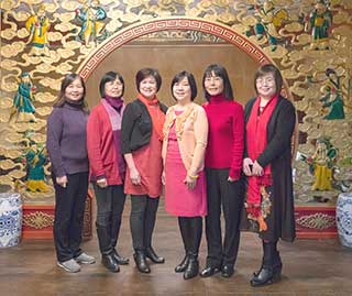 走過攝影區進入宴會廳,二十四個餐桌已經佈置完畢,陳璐校長正在給每桌發放晚會的節目單,她說今年是有我校有史以來參會人數最多的一次迎春宴會。抬眼向宴會廳四周看去,原本單調的牆壁也披上了新裝。牆上錯落有致地掛滿了攝影班同學的照片和國畫班同學的作品。照片題材多樣,有人物有風景,有城市有鄉村,有場面宏大的有細緻入微的,天上飛的鳥地上跑獸通通一網打盡。國畫作品有小橋流水,有青山險峰,有亭臺樓閣,也有紅梅報春。一幅幅看下來,只感歎我們中文學校真是人才濟濟。