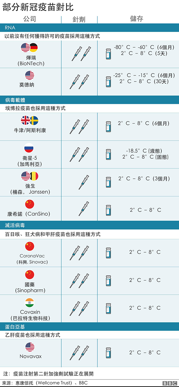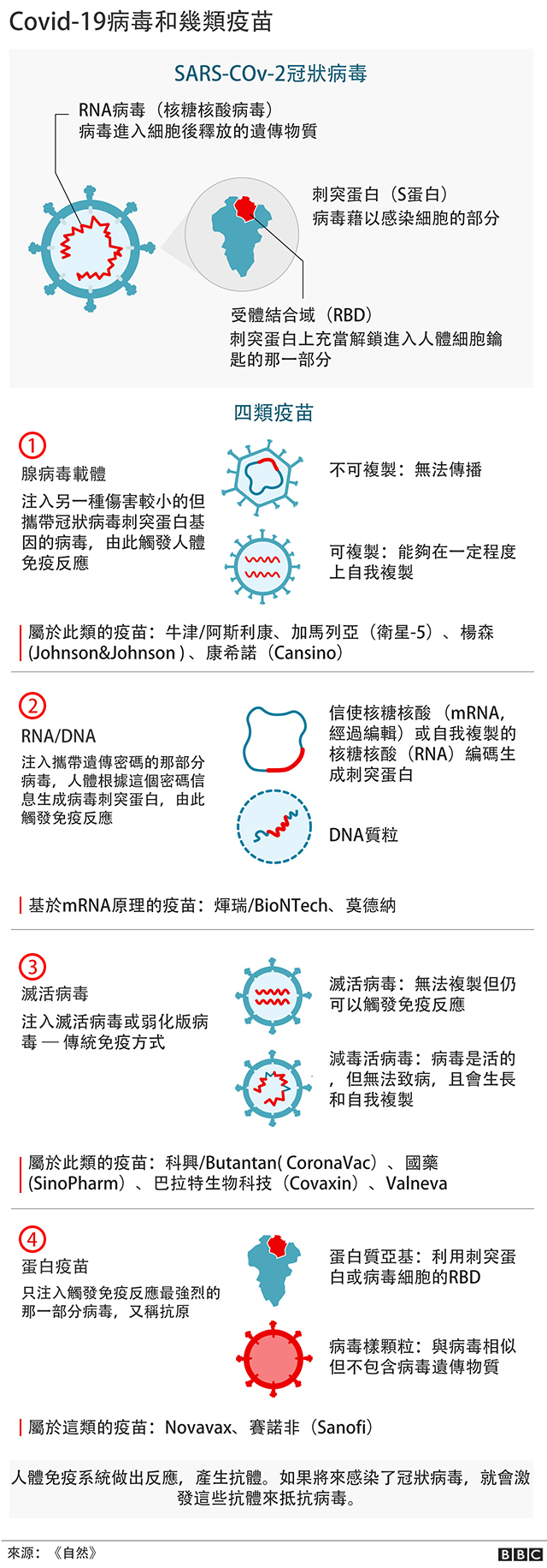 疫苗研發仍在繼續,目前有超過200隻疫苗處於不同的試驗階段,大致可歸為四類。