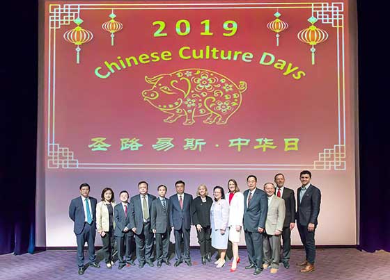 2019年4月27及28日,聖路易斯第23屆“中華日”(Chinese Culture Days)活動在密蘇里植物園隆重舉行。此次中華日恰逢慶祝聖路易斯與南京姐妹城市40周年慶祝,參與的嘉賓包括中國駐芝加哥總領館劉軍副總領事、從南京遠道而來的楊學鵬副市長及南京代表團,密蘇里州勞工廳長許心怡(Anna Hui)、密蘇里州自然資源部部長Carol Comer、植物園首席執行官Bob Woodruff、“中華日”籌備委員會主席朱一民及聖路易斯僑界代表出席,活動吸引數千名當地民眾參與。
