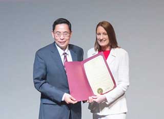 密蘇里州第一位亞裔勞工部部長許心怡(Anna Hui)祝賀中美兩國第一個姐妹城市成立40周年,密蘇里州有發達的農業和生物科技,希望加強這方面的交流合作。