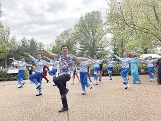今年的廣場舞選用了極具民族特色和感染力的“張燈結綵“,編舞上也採用節奏歡快的舞蹈動作。再配上中國特色的青花瓷演出服,讓大家感覺耳目一新,普遍反應很上檔次,深得遊園觀眾的好評。兩天來雖然天氣偏涼,但每次表演開始後就吸引了很多觀眾前來觀看,而且一些遊客積極回應我們的號召,和我們一起共舞。許多遊園的老外見到我們,都特地過來說你們表演的真棒,。讓我們感到我們達到了傳播中華文化的目的。