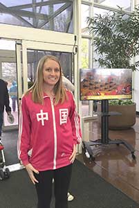 Lianna 2012年到2014年曾經在遼寧教英文,今年特意穿上有中國字樣的衣服來中華日!