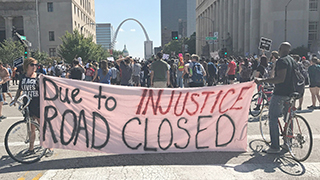 示威者在聖路易市區內抗議,取自網路