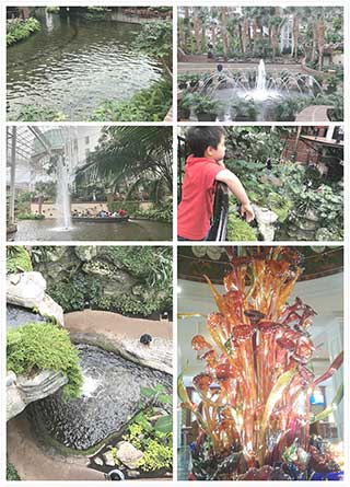 2019/05/10-12,聖村的棋爸棋媽們,帶著孩子們來到了Nashiville TN(田納西州,納什維爾市)參加全美K-6年級國際象棋大賽。Gaylord?Opryland Resort & Convention Center(蓋洛德歐皮蘭德酒店及會議中心)坐落在鄉村音樂的發源地——納什維爾的東北角,是全美最大的室內植物園景觀酒店,占地9英畝(22.24公頃)。隨處可以見的各式的熱帶植物,花卉盈盈,流水潺潺,石橋,木橋,廊坊,音樂噴泉,如織的遊客和橋下驟隱驟現的景觀遊船。讓人不由得聯想到卞之琳的《斷章》中類似的意境: “你在橋上看風景,看風景的人在遊船上看你”
