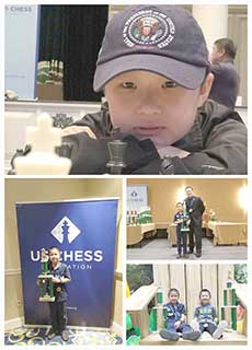 最驚喜朱家兄弟組合:哥哥在第一局,經過3小時的激戰,將USCF比分差距571的K-5 Champion的第三號種子選手扳平,爆了個大冷門,還上了當天的USChess.org頭條新聞;弟弟一邊在比他高200-500的對手中絕處求生,一邊在故地重遊中尋找閒情逸致。最後在神一般的隊友引領下,三人的團隊獲得全國第12名,自己還意外地獲得K-3 Champion 700分以下組第二名。