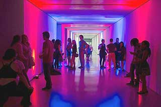 為了鼓勵年輕人愛好藝術,聖路易斯美術館在每個月的最後一個星期五晚上開派對,雖然名為地下,實際上主要藝文活動是在美術館一樓舉行。這次的派對有時空穿越的特色,而且主要的展示人及表演者許多都是華人。地下派對是一個流動性的活動,它有各項表演及展覽活動同時進行,觀眾從一間藝廊遊走到另一間,自由而且從容。