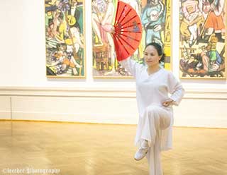 太極拳大師王錤是陳式太極拳十二代傳承人,師承太極拳宗師陳正雷,她也是國際知名太極拳作家,曾經獲得了二個重要太極機構頒發獎章,王錤在美國及海外教學人數超過一千五百多人。因為觀眾是流動的,王錤應美術館要求和學生也是太極認證合格老師曾勤共同舉辦三場表演及教導, 當晚王錤??集陳式太極拳老架及新架套路的精要動作而編成一個套路,行雲流水、剛柔並濟,曾勤表演功夫扇,絲絲入扣,獲得觀眾熱烈掌聲。王大師偕同曾老師並且教導古老健身氣功八段錦,許多年輕觀眾紛紛跟隨學習。