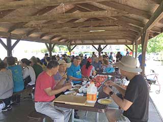 5月27日上午,浙江同鄉會理事們早早地來到了位於Creve Coeur Lake 的 Heldman Shelter,忙碌地把飲料、點心、水果等一一擺上廳內餐桌。本次活動安排在美麗的Creve Coeur 湖,浙江同鄉會一開年就預訂了棚子。本次野餐燒烤活動由會長黃愛雪女士具體安排落實燒烤活動。 這次燒烤活動的烤肉,炒米粉由同鄉會副會長徐希友先生負責採購,醃制。其他食物的採購,烹飪等都由常務付會長陳余龍,副會長李建蘇,理事趙少昂等分頭採購和燒制。燒烤由同鄉會副會長徐稀友,理事趙少昂,來自芝加哥的李?主理,理事羅明也給予很大的幫忙。活動從11點到下午3點,所有參加聚會者,不分男女老少,在美麗的公園裡盡情享受了聖路易初夏的節日氣氛,戶外集體活動的快樂,和結交新朋老友的喜樂。不少會員在活動結束前仔細詢問下次活動的安排,他們說這次活動還沒有結束,已經開始等待著下次活動的到來。今年活動吸引了更多的新朋友和遠道而來的朋友,有幾位朋友從開車幾個小時專程來參加我們的活動。