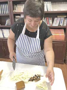 7月27日星期六早上,我們邀請到Mimi師姐為我們示範做素菜合子。早上10點所有的中,西學員都準時到達會所。Mimi師姐從和麵、揉麵、炒餡等一一解說。皮做得好,餡要做得更好。所以每一位學員都親手自己和麵、揉麵到做成成品,一步一步的示範學習,大家都做得很高興,尤其是看到金黃色的素菜盒子煎好大家都很開心。還有美國朋友馬上把煎好的盒子就Po到Facebook臉書上。讓未能參加的朋友非常羨慕說下次一定要來。來參與的朋友也多稱讚 「真好吃」。