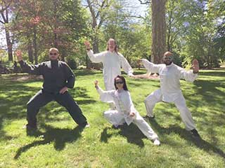 太極組的第二部分節目是每天下午一點及三點,在南京園及日本園邊的草地上。會有不同的太極教練領著他們的學生,表演各種太極套路。除了太極拳以外,還有太極劍、太極扇以及推手等項目,同時他們會邀請觀眾一同來嘗試體驗。王錤表示以往太極表演之後,許多觀眾因為好奇想提出問題,但是又不好意思在大庭廣眾下問,今年草地活動沒有臺上台下之分,可以沒距離與觀眾交流。往年許多來賓表示他們曾經旅遊中國,他們特別懷念在公園內看到一群群人打拳打劍,頗有特別的感受。今年的中華日就是要創造出這種感覺,也要讓聖村大眾瞭解中國人民的健康生活型態。