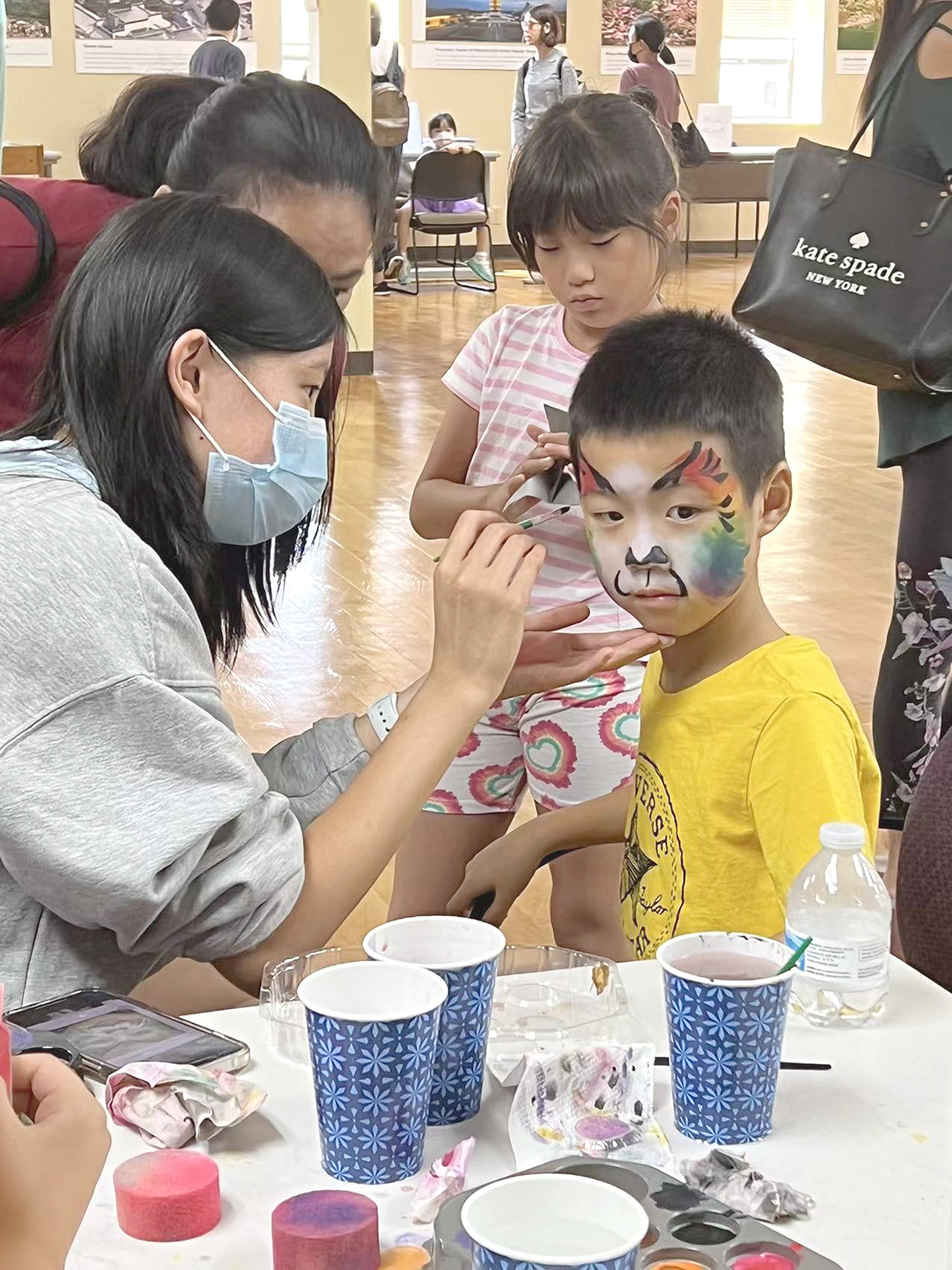 學校還安排了學生志願者帶領客人們參觀了學校的校園環境,並開展了一系列課程註冊諮詢、註冊繳費服務、中文分班測試等服務。大廳裡充滿書香味和趣味性的各個展臺展示了一些主要特色課程以及校園文化中的系列活動介紹;課程的特色主題設計、齊全的設施們等讓家長們連連稱讚。高中生志願者在開放日設置了兒童活動角,帶領小朋友們玩折紙,畫花臉,讓家長們能夠安心瞭解學校的課程。