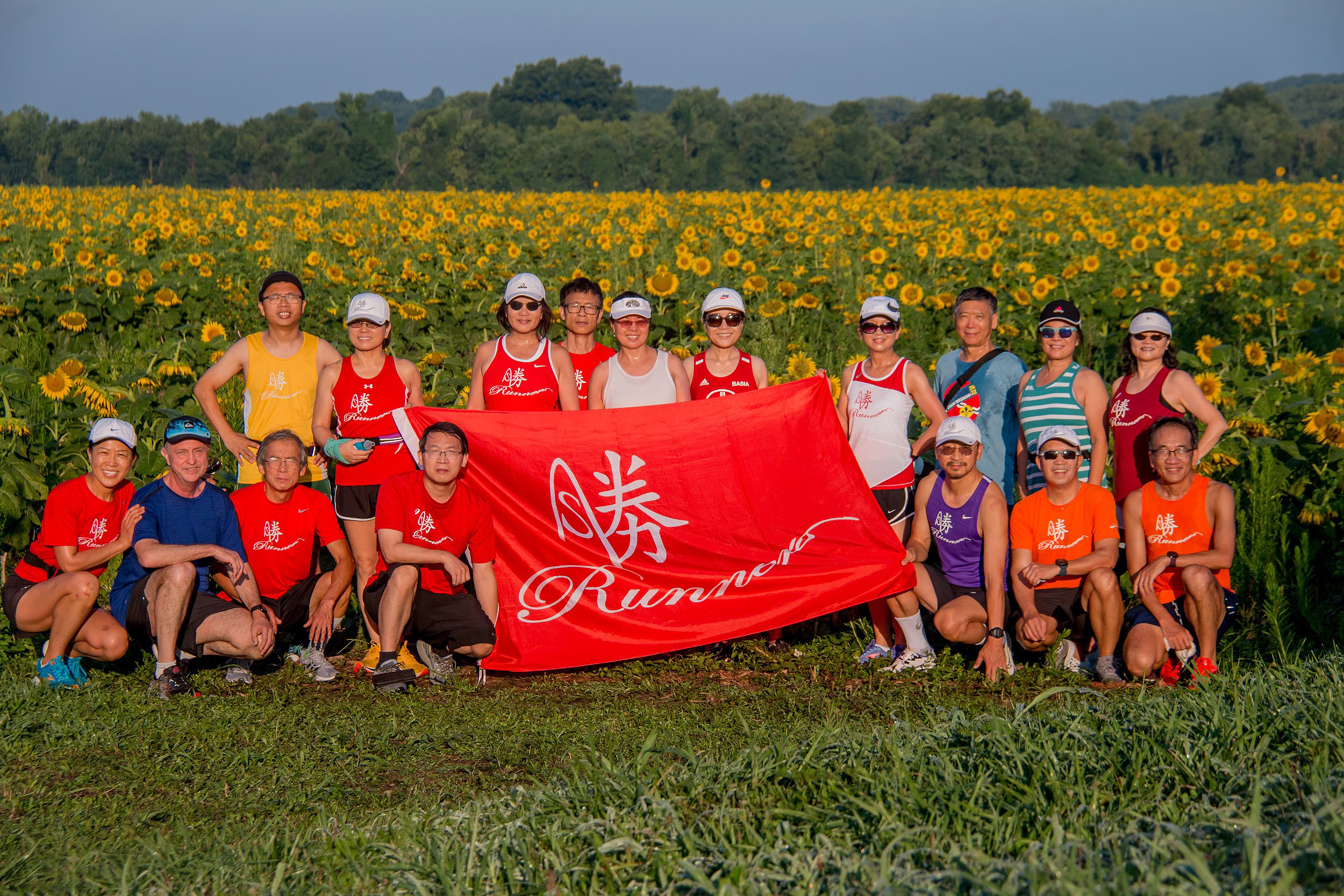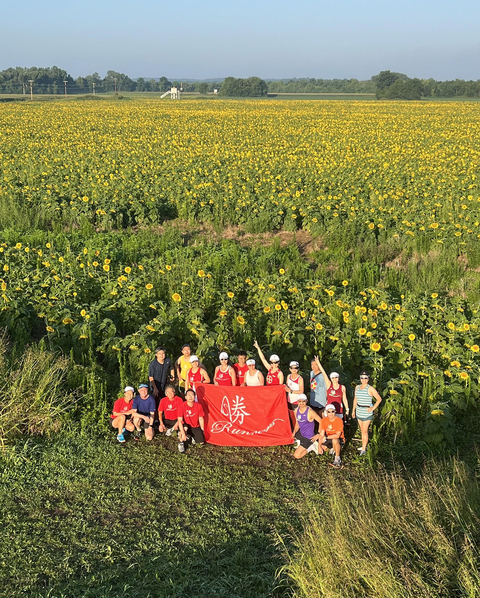 這天是8月6日星期六,天氣既熱又濕,是典型的中西部天氣,也不是什麼中西節日,而是聖路易士華人跑步團體-「勝跑群」每週舉行的群跑日。但與往常不同,群跑地點由碎心湖(Creve Coeur Lake)移到一河之隔的Weldon Spring,因為那裡的向日葵正在盛開。