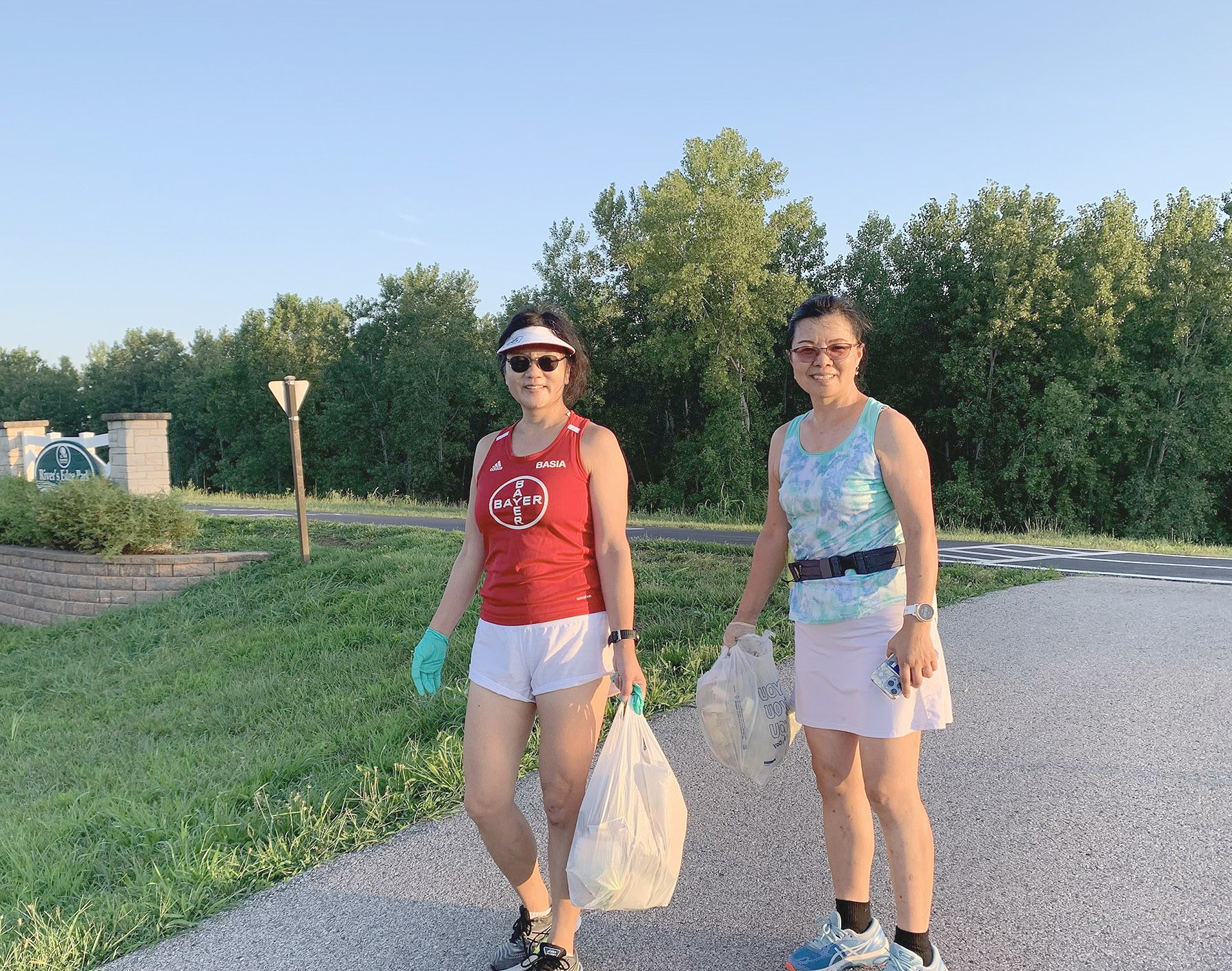「乾乾淨淨的公園,垃圾都藏在草叢裡,我和盛華在短短的0.26mile 就撿了兩大包,得到米國友人誇獎的同時,還得了好多個吻…..蚊子的吻。」邵愛華道。