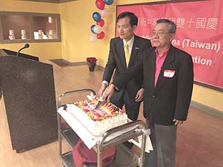 劉坤城組長與籌備會主席蔡國雄僑務顧問同切生日蛋糕為中華民國慶生