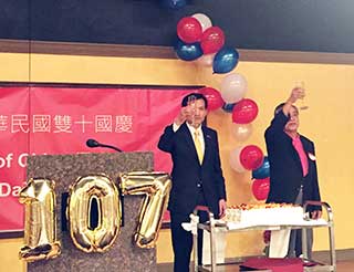 劉坤城組長與僑務顧問蔡國雄舉杯邀請與會人士共祝中華民國生日快樂