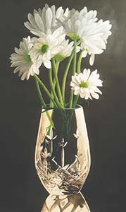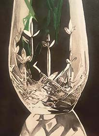 這次獲獎的作品是一幅丙烯靜物《Refraction》,一個精美的水晶玻璃瓶中,插著幾朵白花,畫面寧靜唯美,水晶玻璃絢麗的折射質感,被表現的美輪美奐,顯示出Emily扎實的基本功和細膩的觀察力,以及嫺熟的表現技巧。入選全美十佳,是名至實歸的實力體現。