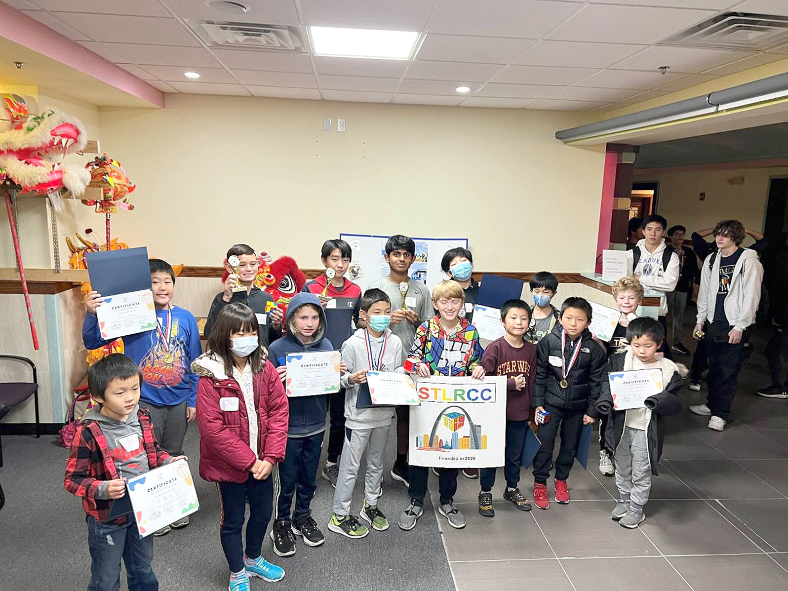11/12/2022, 聖路易斯魔方俱樂部(STLRCC)在聖路易現代中文學校(SLMCS),舉辦了疫情以來第二次線下面對面的魔方比賽。這次參賽的選手共有30多位選手報名,除了本地的選手,還有好幾位是來自伊利諾州的選手們。 其中不但有來自本學期在現代中文學校參加魔方學習的學生,也有許多來自外校不同族裔的6 -16歲左右的選手。 他們有的曾經在2020-2022的Zoom課程中參加過學習,以及STLRCC舉辦的線上的比賽,也有參加過春季的魔方大賽,還有的曾經在去年的中華日STLRCC的布展帳篷和STLRCC成員們互動並挑戰過。