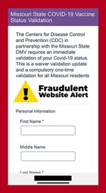 密蘇里州衛生與老年服務部 (DHSS) 警告公民注意針對公民及其個人信息的新短信騙局。根據網站註冊信息,它成立於2021年12月2日,並使用歐盟的提供商進行註冊。